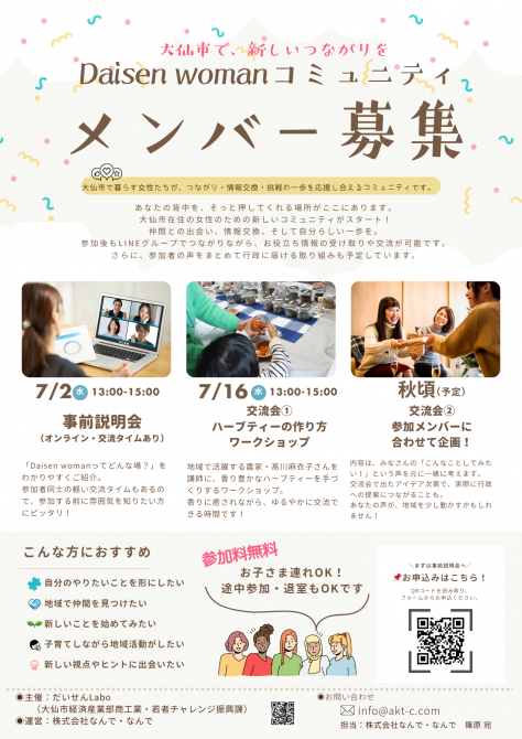 Daisen womanは女性活躍のためのコミュニティ形成促進事業です。